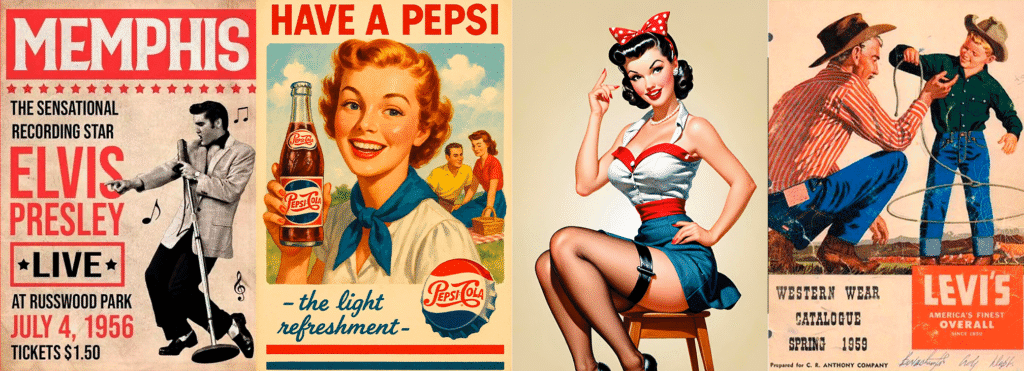 - Ropa vintage: Muchos entusiastas buscan ropa auténtica de los 50s, encontrada en tiendas vintage o ferias de coleccionistas.